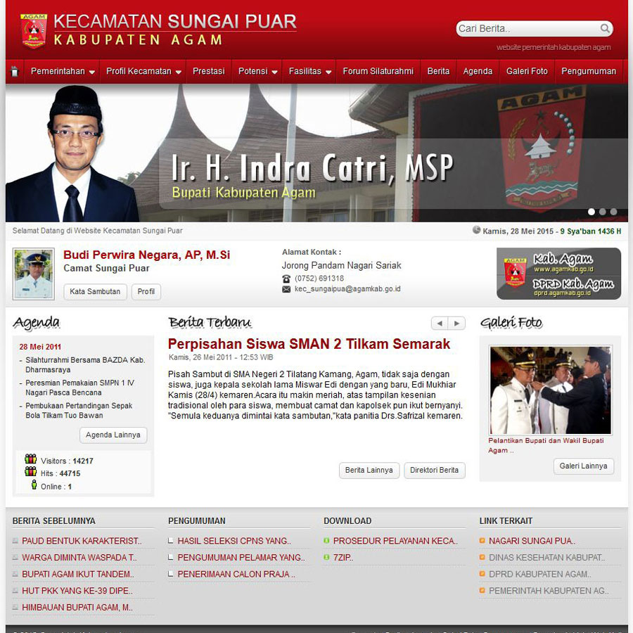 Project tahun 2011. Merupakan website resmi 16 Kecamatan di Kabupaten Agam. Sebagai institusi pemerintahan perpanjangan Pemerintah Kabupaten Agam dan sesuai dengan peraturan perundangan di Indonesia agar setiap institusi pemerintahan memiliki website resmi sebagai sarana publikasi tentunya menjadi kebutuhan bagi Kecamatan - Kecamatan di Kabupaten Agam.