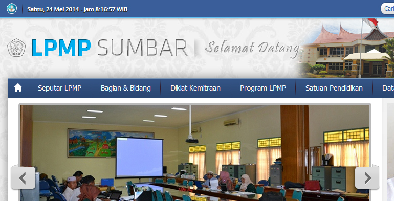 Project tahun 2013. Merupakan web portal Lembaga Penjaminan Mutu Pendidikan Provinsi Sumatera Barat. Sebagai salah satu lembaga pemerintahan dibawah kementrian pendidikan dan kebudayaan republik indonesia, LPMP Sumbar terus berupaya untuk memaksimalkan fungsi kelembagaannya di Sumatera Barat sesuai tupoksi yang di embannya. Maka website resmi sebagai sarana publikasi dan transparansi kegiatan dan informasi serta pelayanan kelembagaan di Sumatera Barat tentunya menjadi kebutuhan bagi LPMP Sumbar.