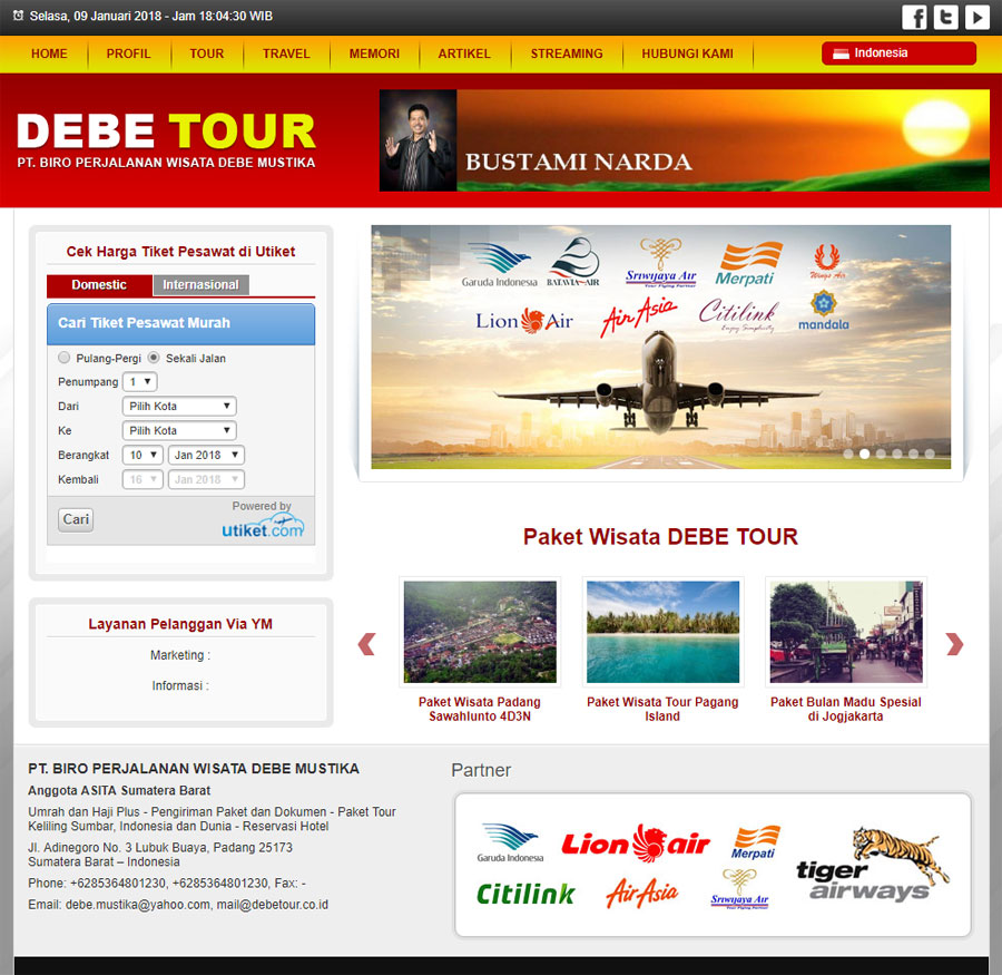 Project tahun 2014. Merupakan website resmi DEBE Tour & Travel. Sebagai salah satu media untuk memasarkan produk dan jasa DEBE Tour & Travel secara online dan juga memperkuat citra perusahaan dimata konsumen dan dimata para relasi perusahaan.