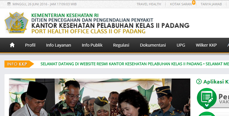 Project tahun 2016. Merupakan website resmi Kantor Kesehatan Pelabuhan Kelas II Padang. Sebagai salah satu institusi vertikal dibawah Kementerian Kesehatan Republik Indonesia dengan wilayah kerja Sumatera Barat dan sesuai dengan peraturan perundangan di Indonesia agar setiap institusi pemerintahan memiliki website resmi sebagai sarana publikasi dan transparansi tentunya menjadi kebutuhan bagi Kantor Kesehatan Pelabuhan Kelas II Padang.