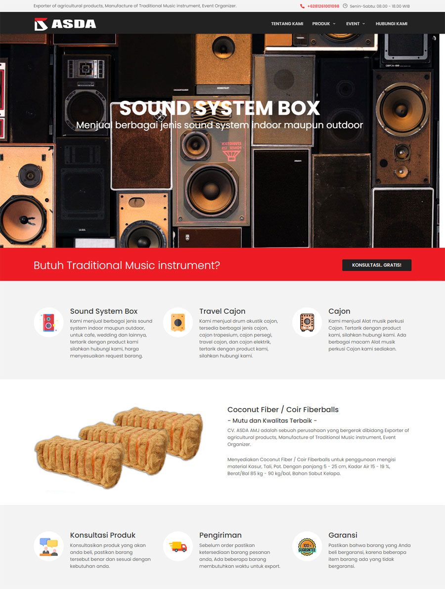Merupakan website profil CV. ASDA AMJ - Exporter of agricultural products, dll. CV. ASDA AMJ merupakan perusahaan yang bergerak dalam bidang Exporter of agricultural products, Manufacture of Traditional Music instrument, Event Organizer.