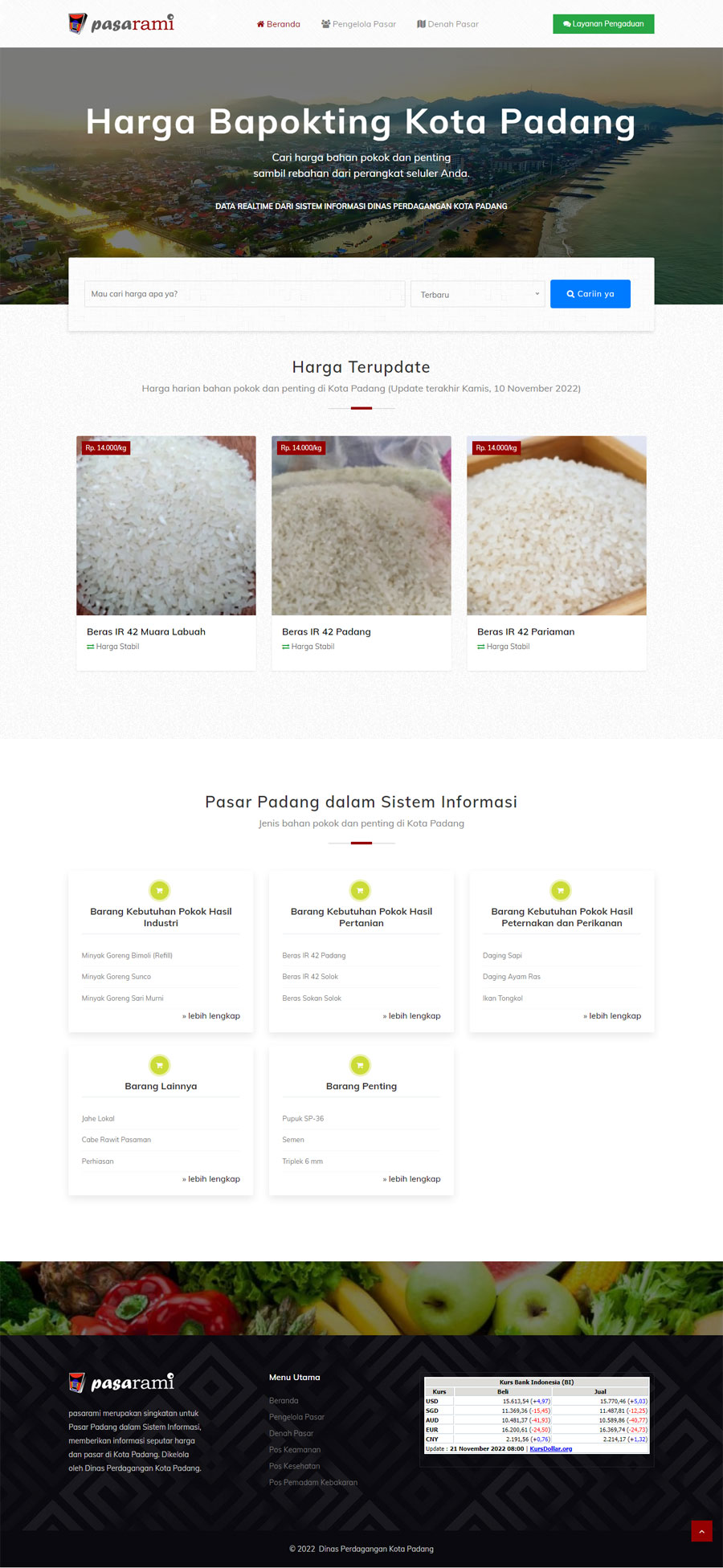 Website Pasarami - Update Harga Bapokting Pasar Raya Kota Padang