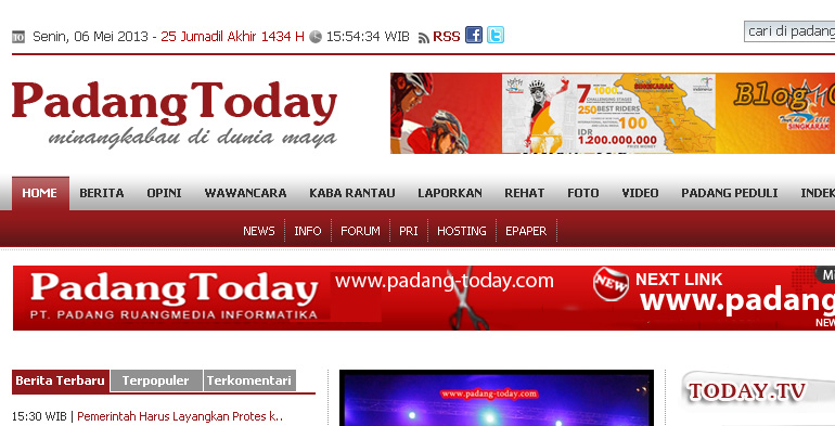 Project tahun 2010. Merupakan website resmi media online Padang Today. Sebagai salah satu media online di Sumatera Barat dan grup perusahaan dari Padang Ekspres Group tentunya website news portal menjadi kebutuhan pokok Padang Today dengan slogan Minangkabau di dunia maya.