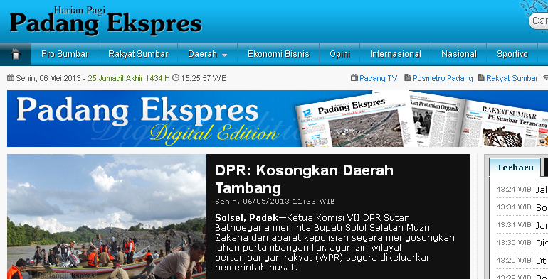 Project tahun 2011. Merupakan website resmi media Harian Pagi Padang Ekspres. Sebagai salah satu media koran harian terbesar di Sumatera Bagian Tengah dan grup perusahaan dari Jawa Pos Group tentunya website news portal menjadi salah satu produk media Harian Pagi Padang Ekspres.